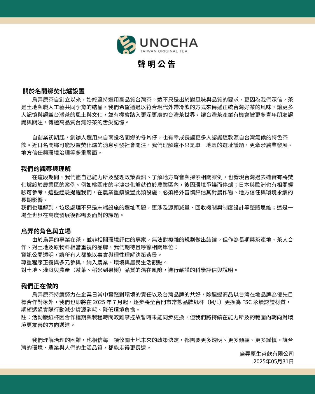 14 年前,我們從傳遞一杯高品質台灣好茶的初心出發,走到今天擁有更多話語權與社會責任,也讓我們深刻體會:每一次意見與觀點的表達,都需要更加審慎與踏實。