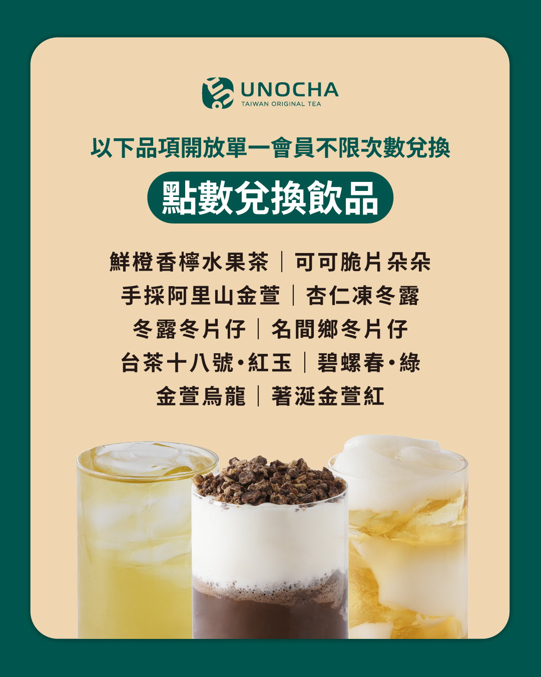 - 兌換飲品(依各門市營業時間供應兌換)